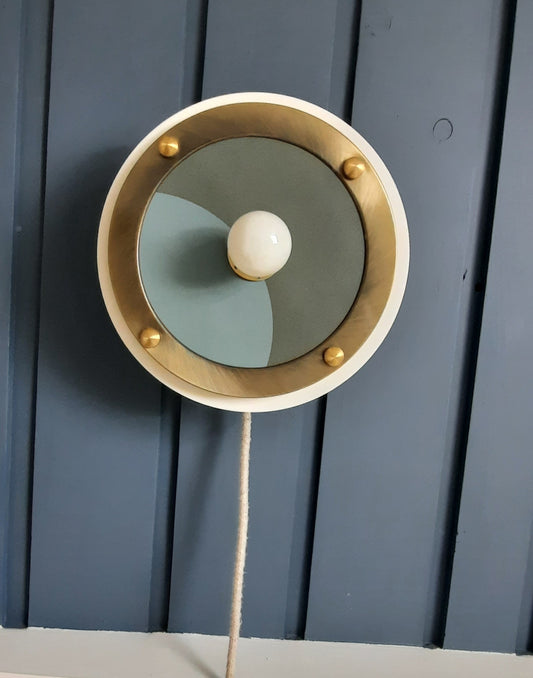 Una cautivadora fusión de colores y formas que aporta un toque moderno y artístico a cualquier espacio. Este aplique destaca por sus azulejos en tonos verdes, realzados con un semicírculo azul, creando un contraste armonioso y relajante.