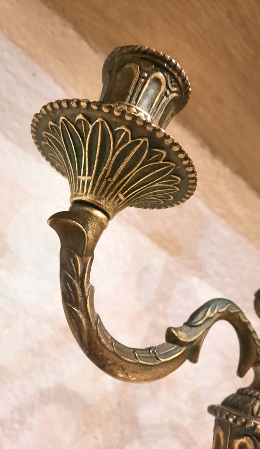 Par de candelabros de metal dorado