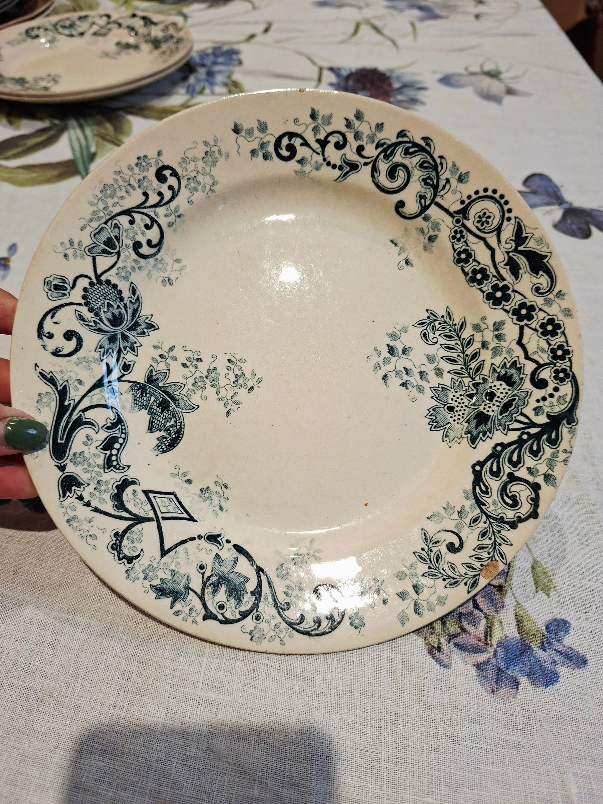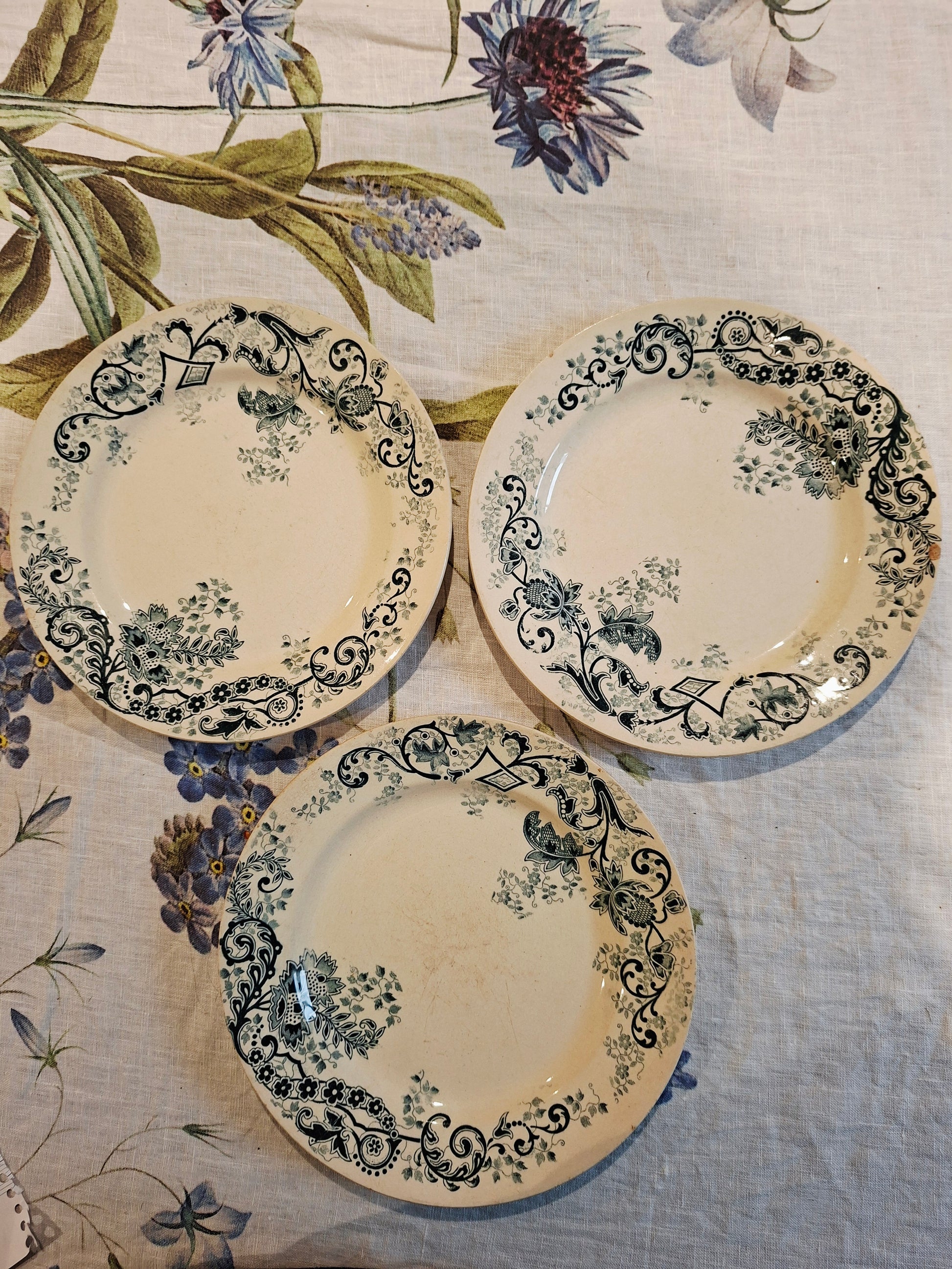 Légères rayures au fond, témoignant de leur authenticité Un impact sur une assiette, ajoutant caractère et histoire |