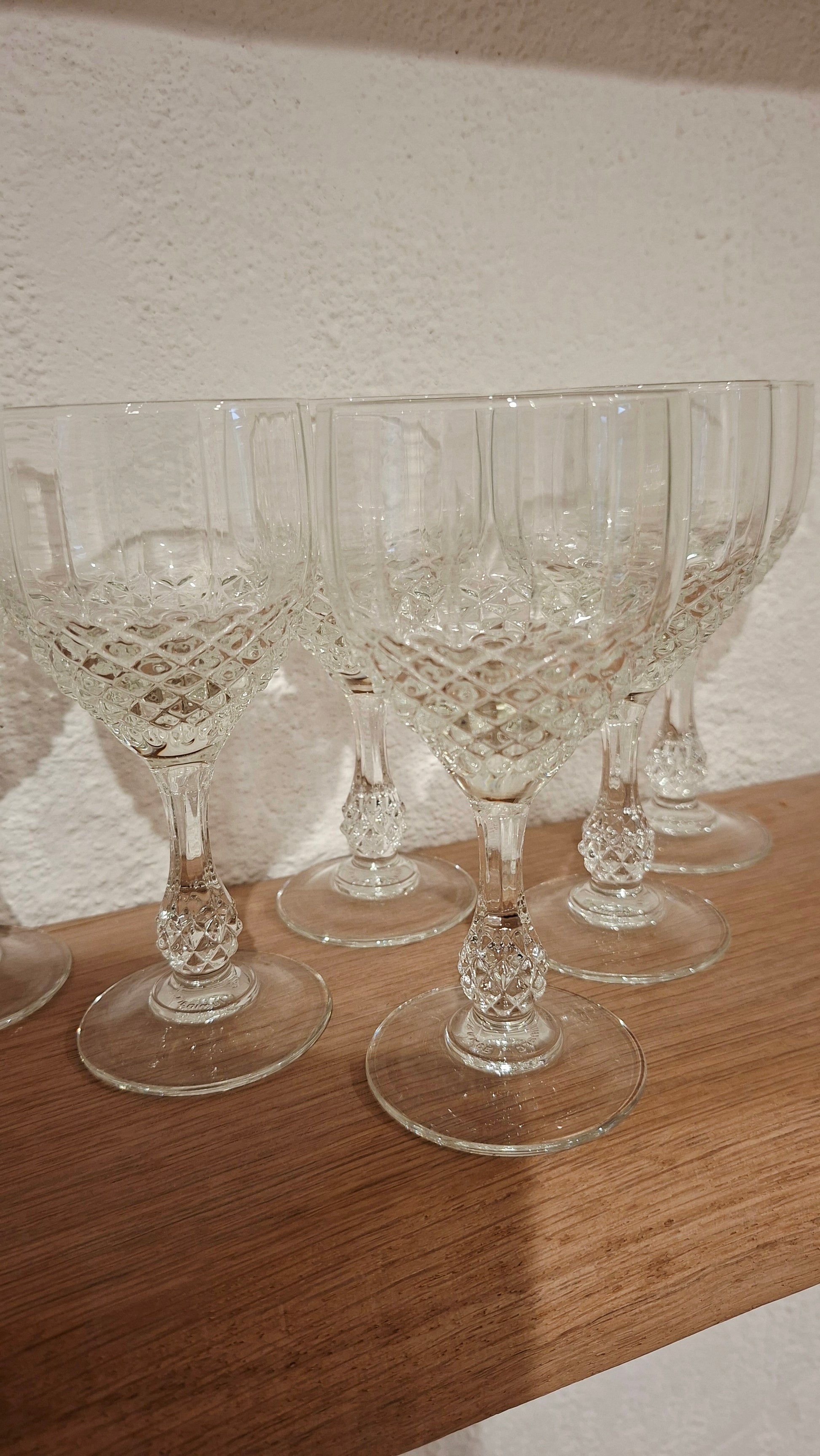 6 petits verres en cristal d’Arques, modèle Chenonceaux, en excellent état. Aucun éclat, cristal clair et brillant.