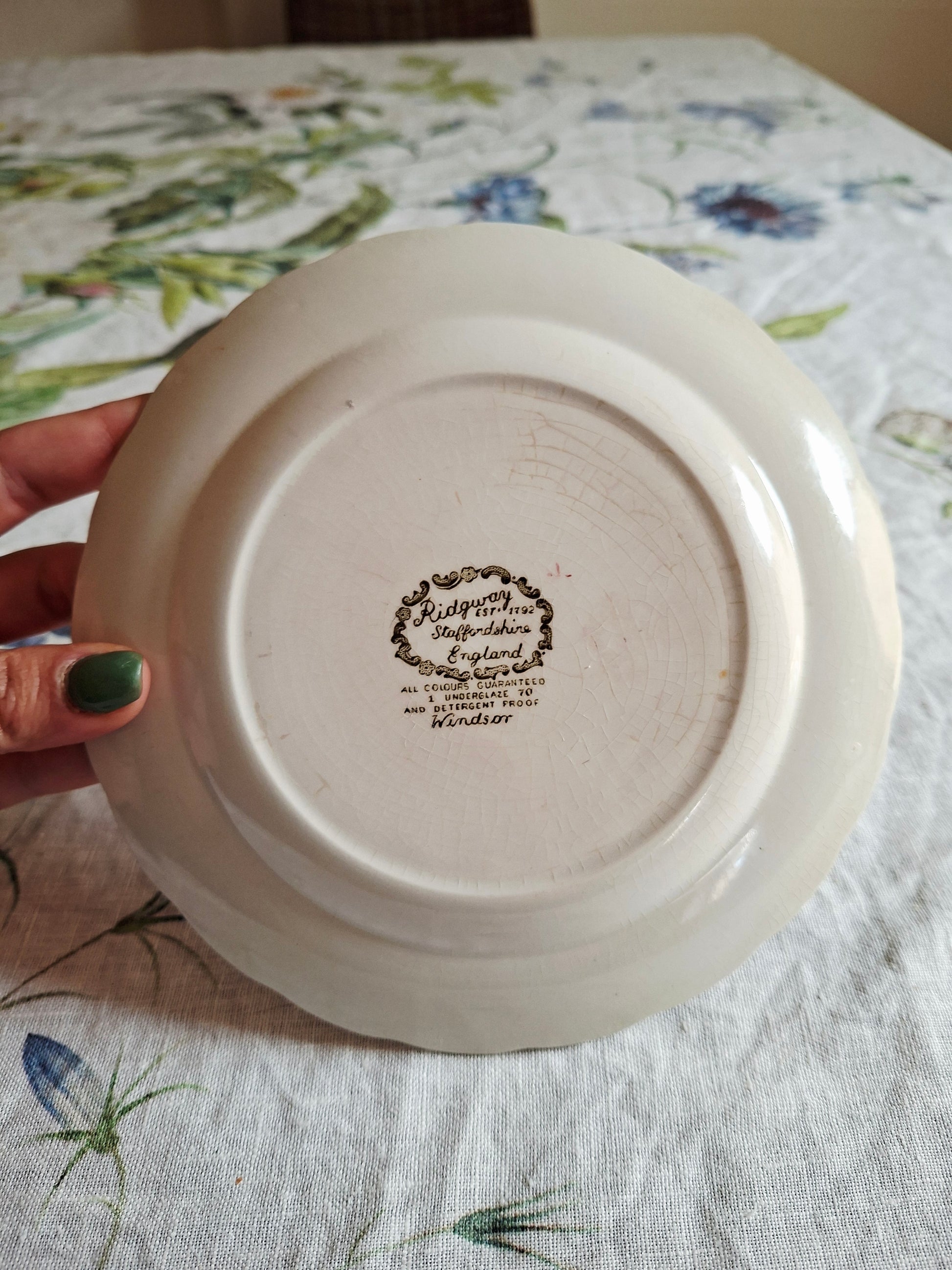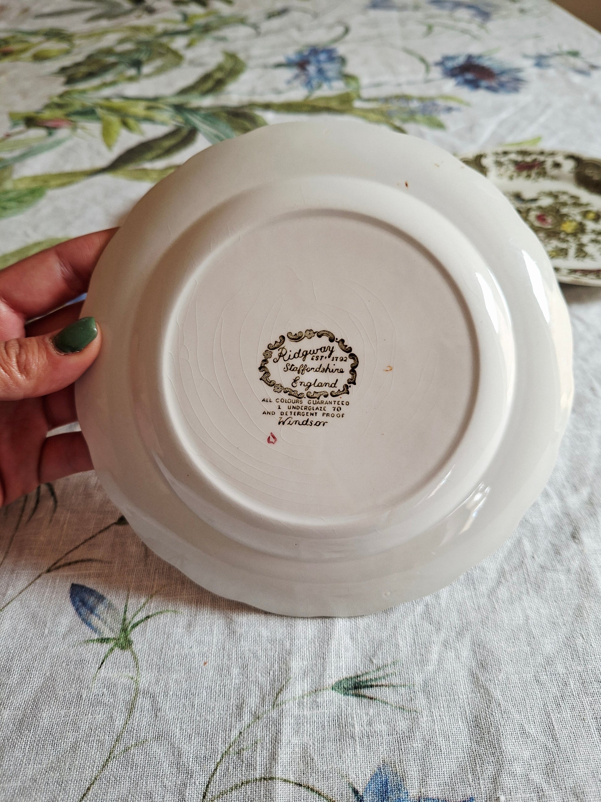 Charmant lot d’assiettes à dessert en faïence anglaise, signées Ridgway of Staffordshire, modèle Windsor. Un service élégant et raffiné, parfait pour compléter votre table.