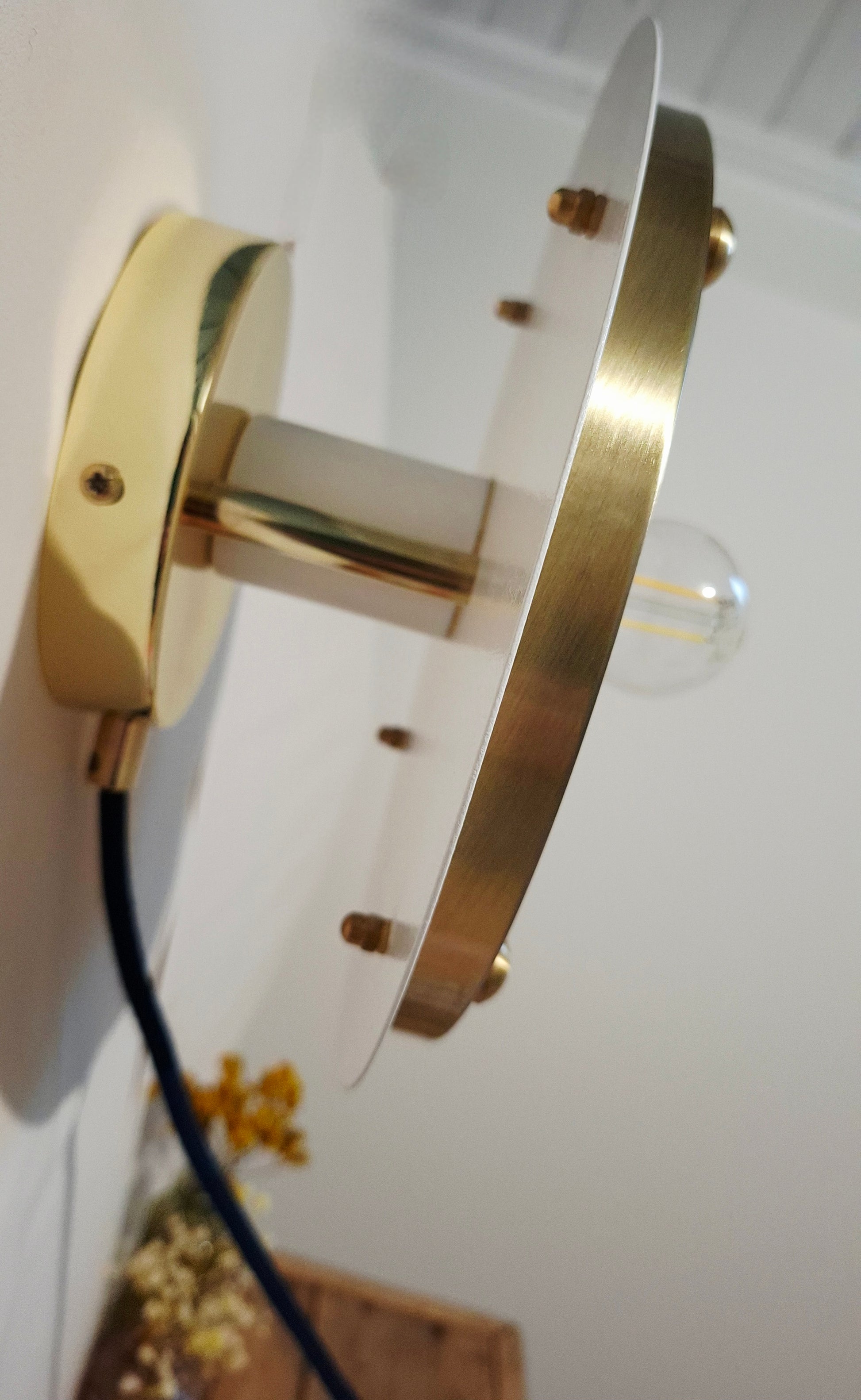 L’applique est équipée d’un câble textile bleu nuit de 1m60, muni d’un interrupteur et d’une prise blanche pour une installation rapide et sans travaux.