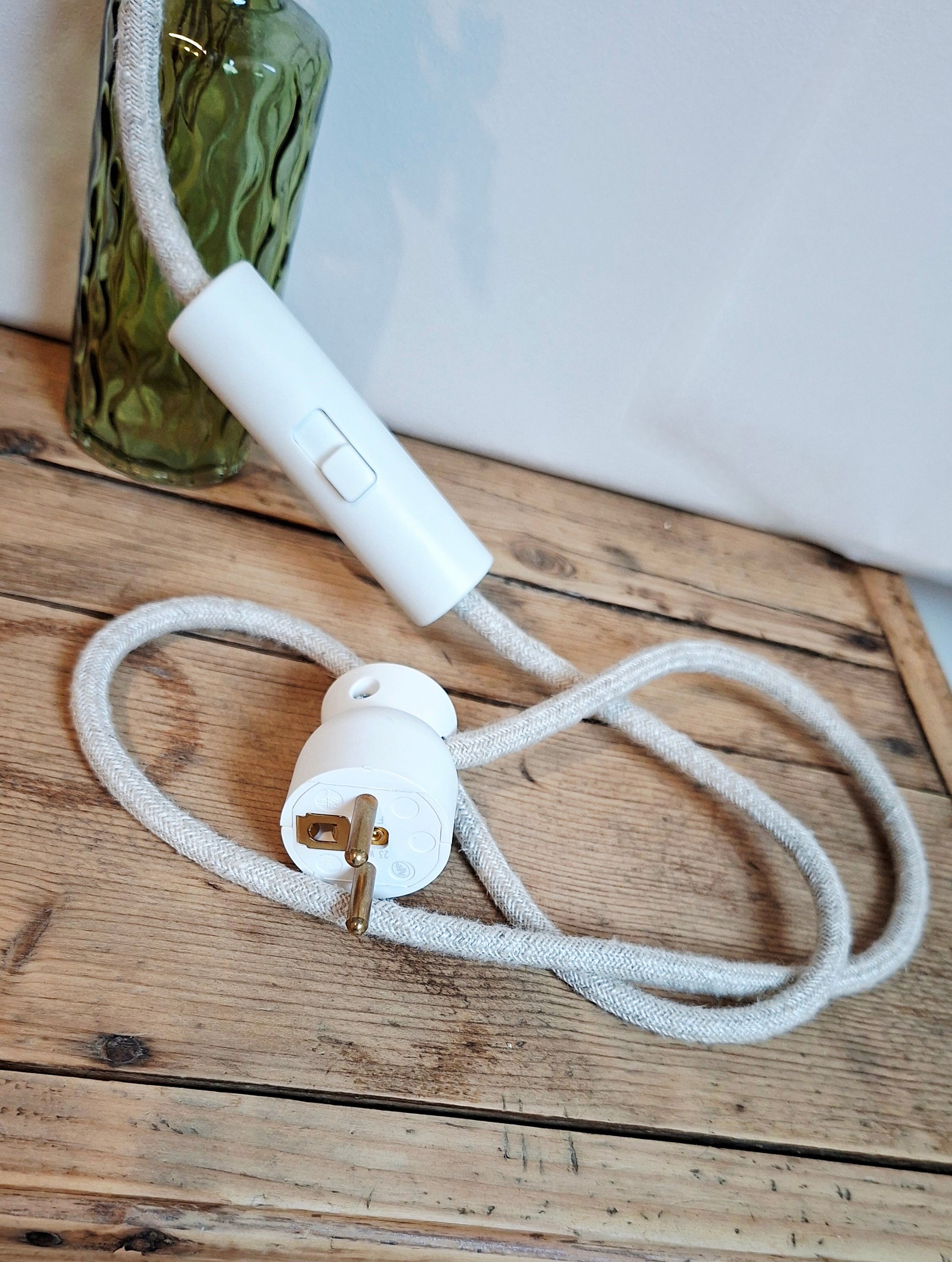 L’applique est équipée d’un câble textile beige de 140 cm, muni d’un interrupteur et d’une prise blanche pour une installation rapide et sans travaux.