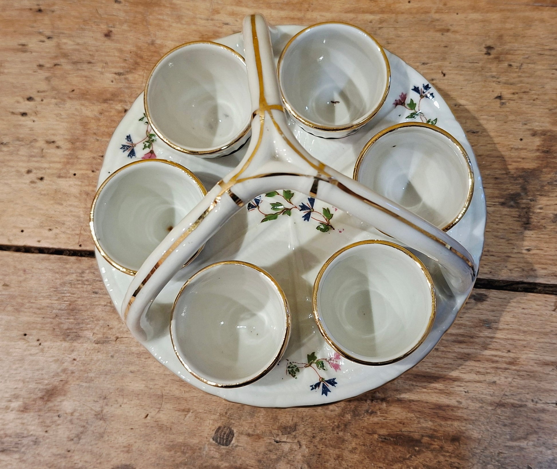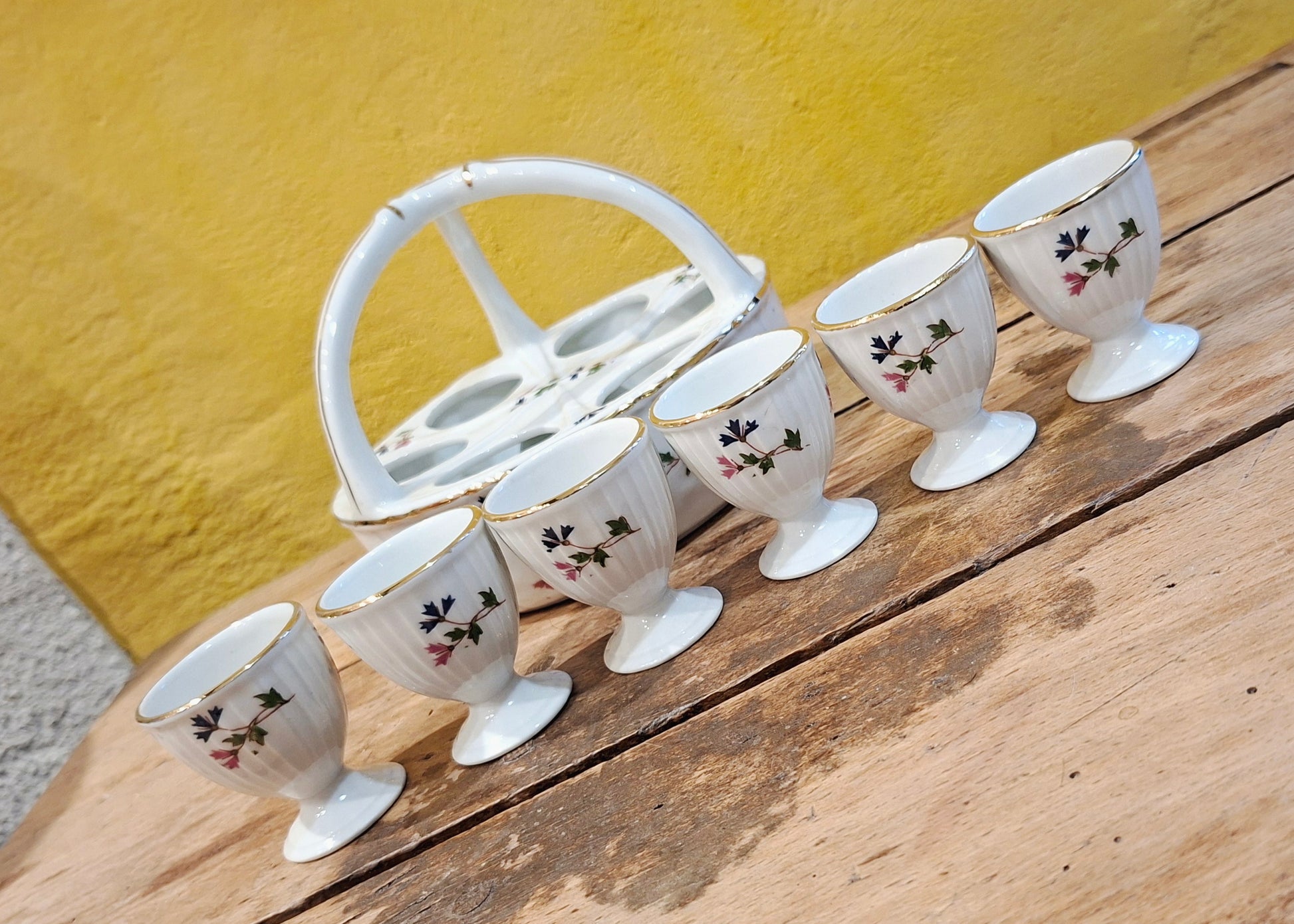 Charmant ensemble de coquetiers avec leur socle, parfait pour dresser une table de petit-déjeuner élégante et authentique.