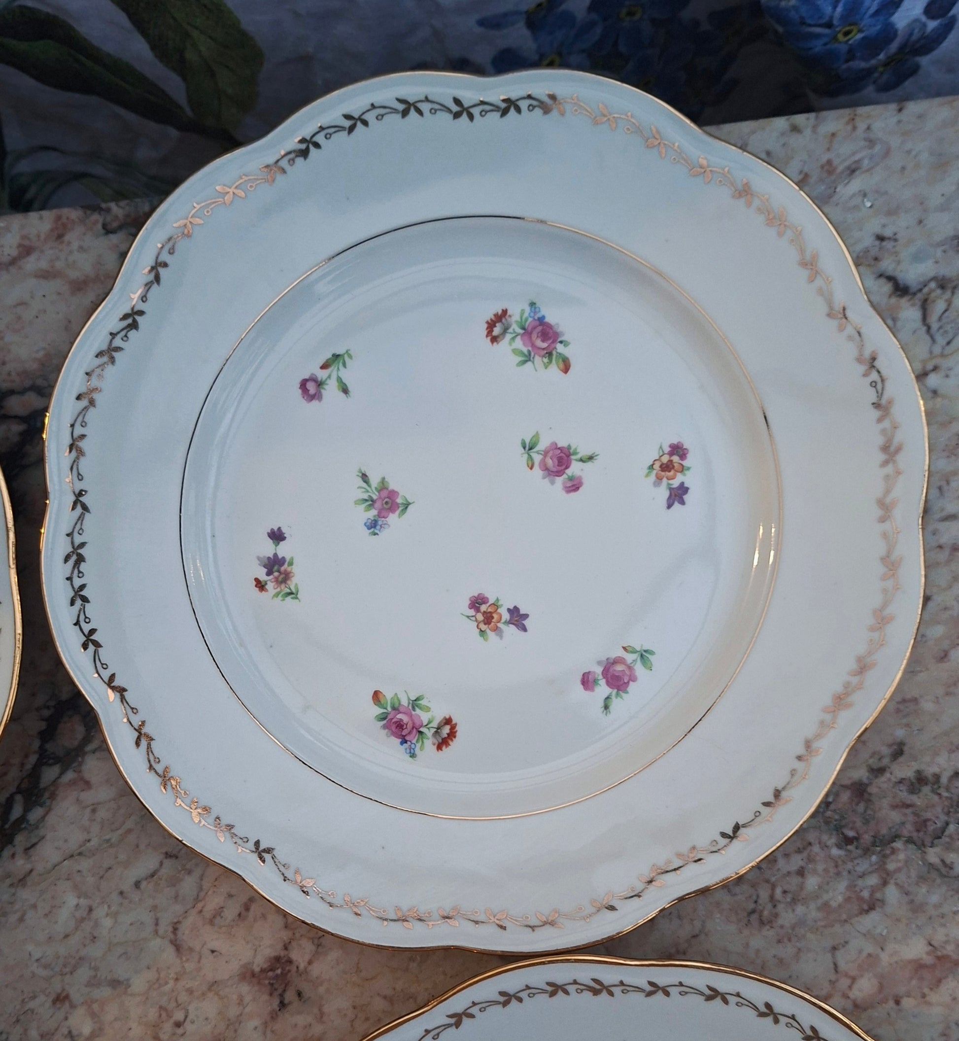 Ensemble de 4 assiettes plates en porcelaine dure S.F.P, même modèle et même diamètre que le premier lot.
