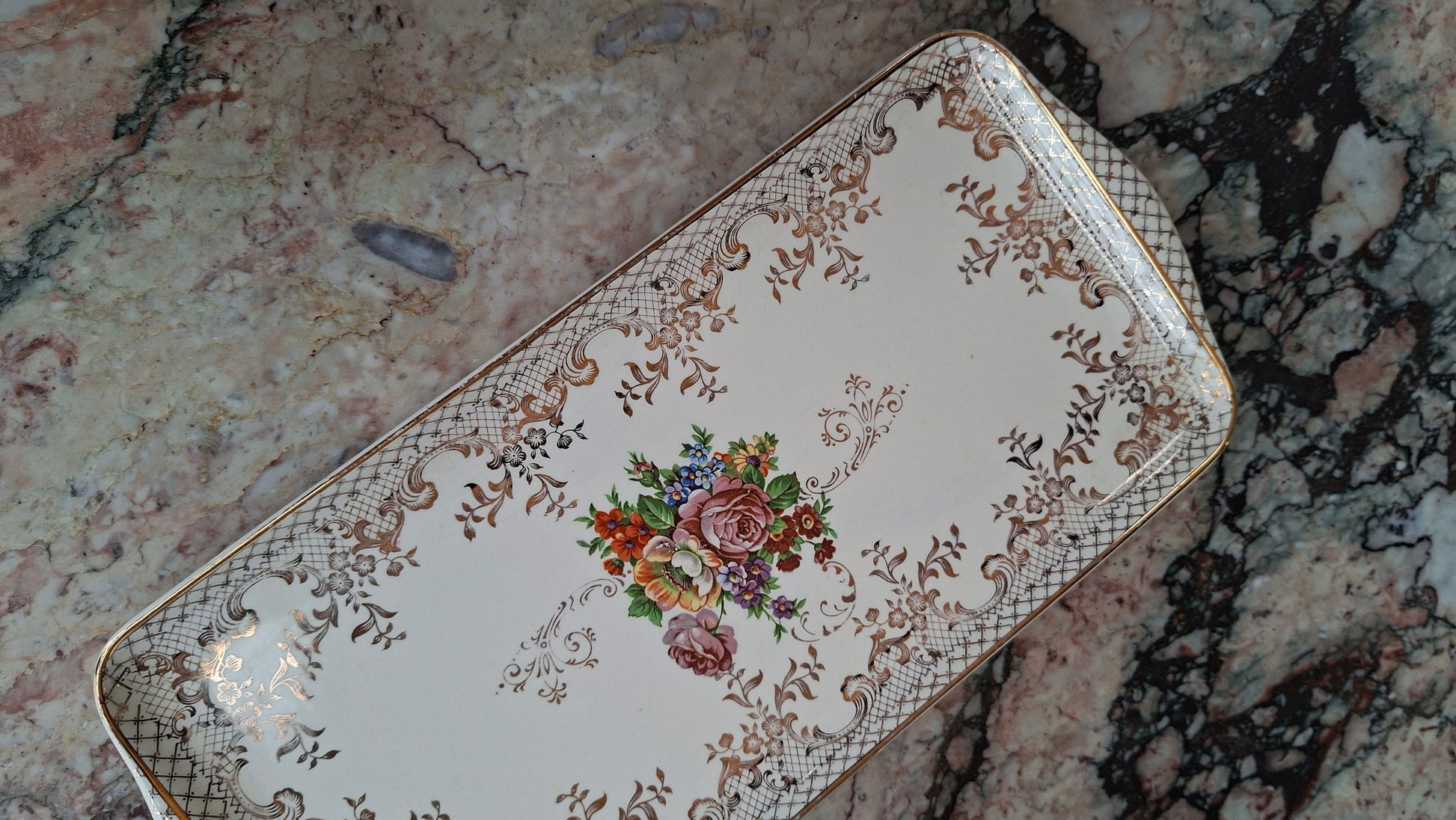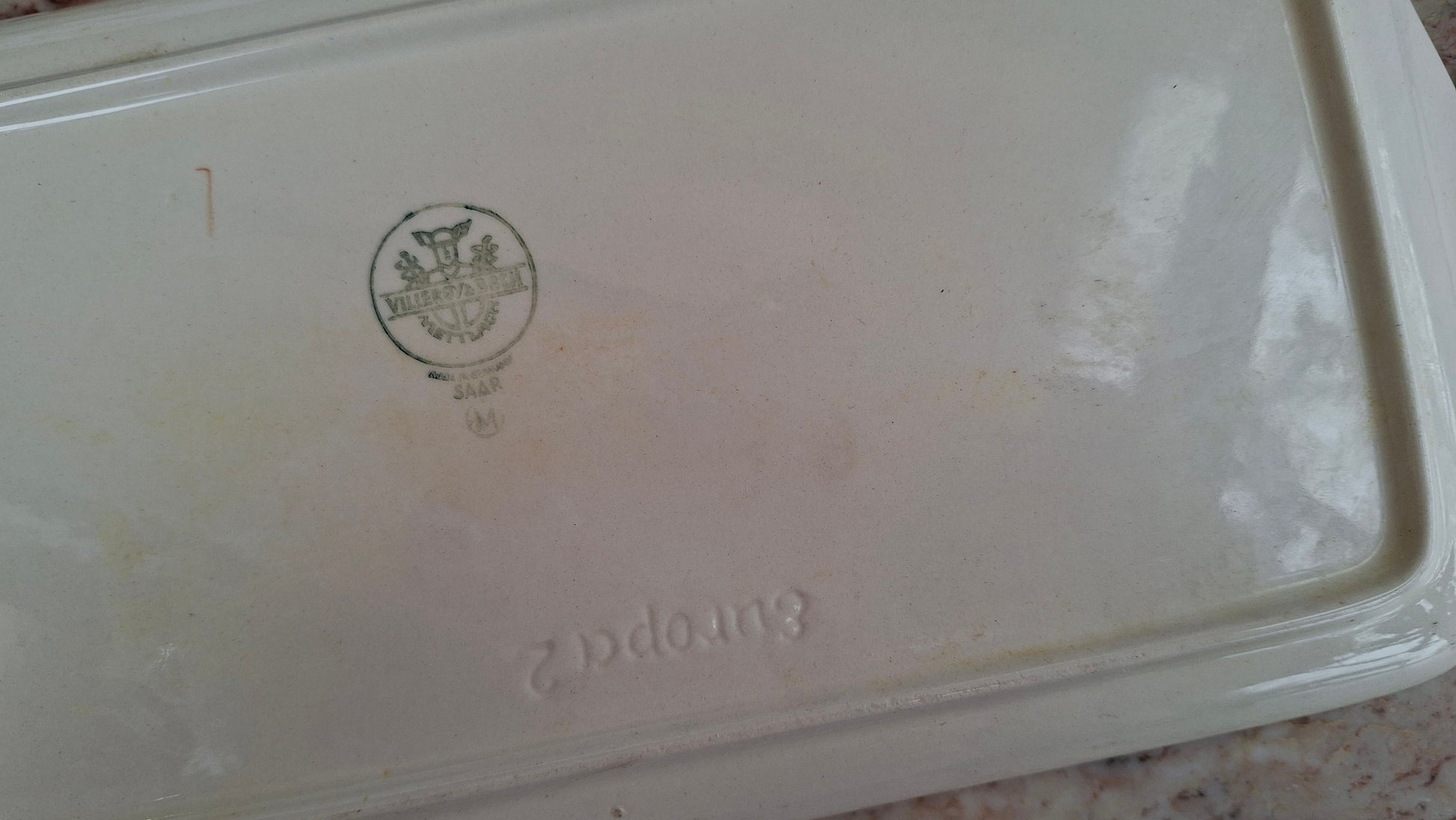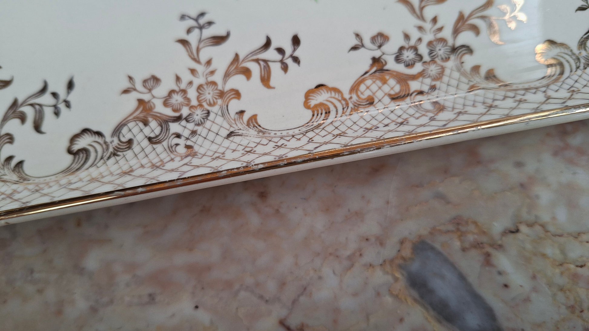 Le décor est très légèrement effacé sur le bord à certains endroits, quasiment imperceptible et n’altérant en rien son élégance ni son utilisation. Un beau plat raffiné, idéal pour compléter une table de fête ou offrir une présentation soignée à vos préparations.