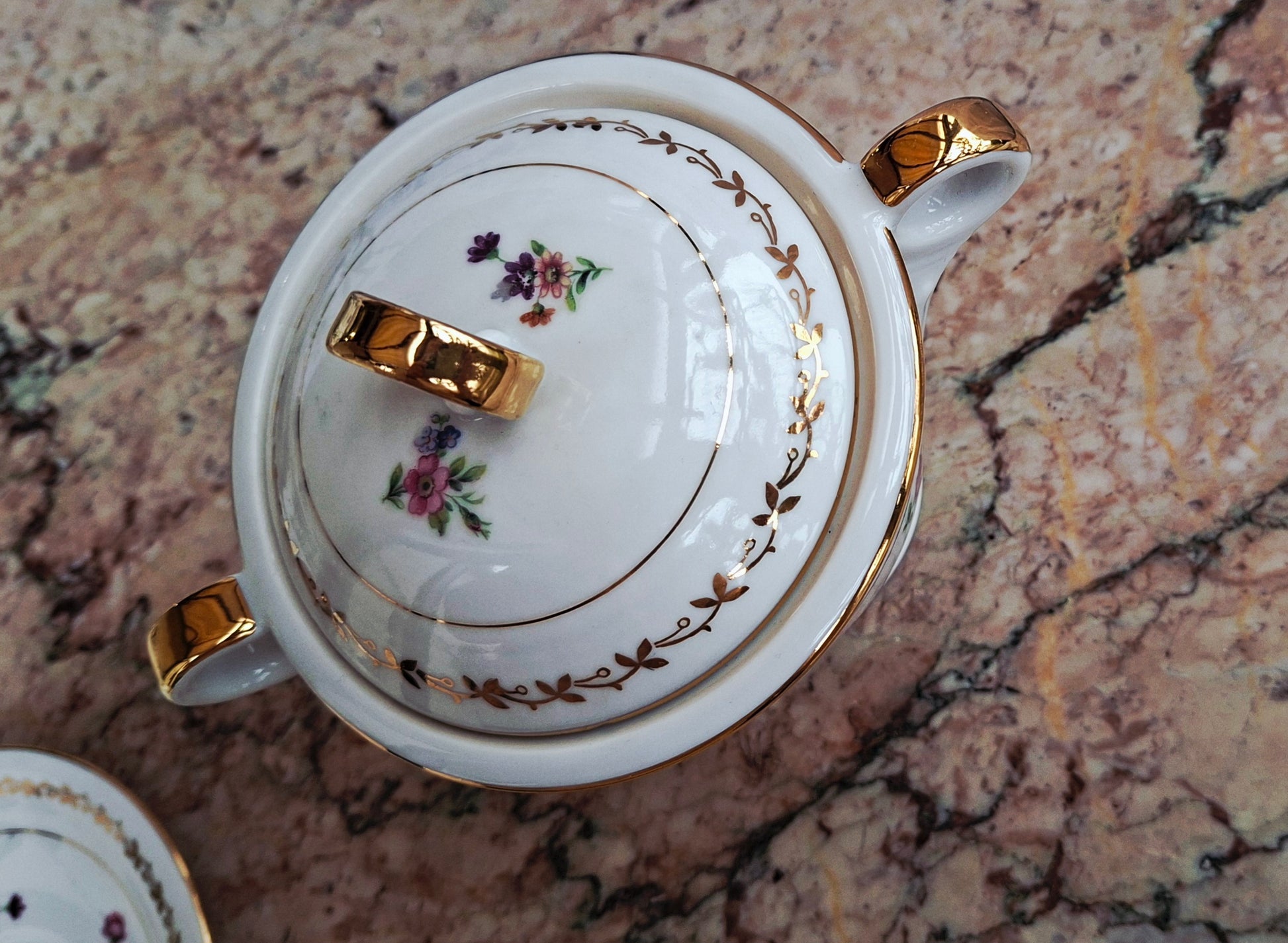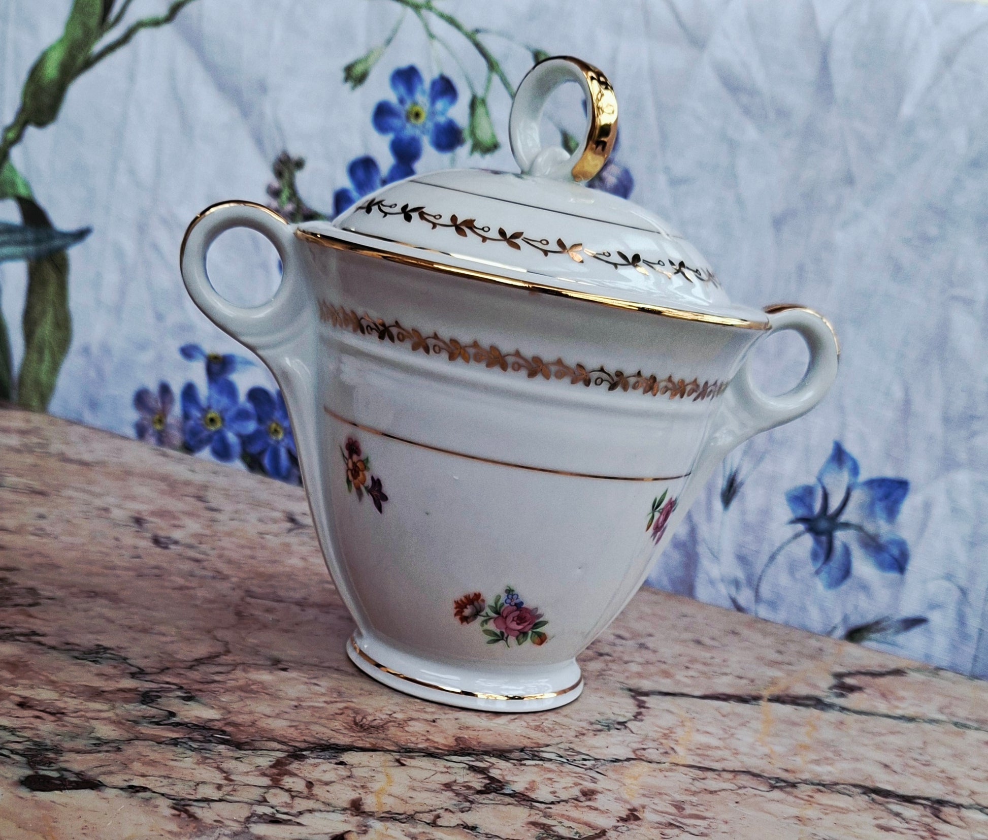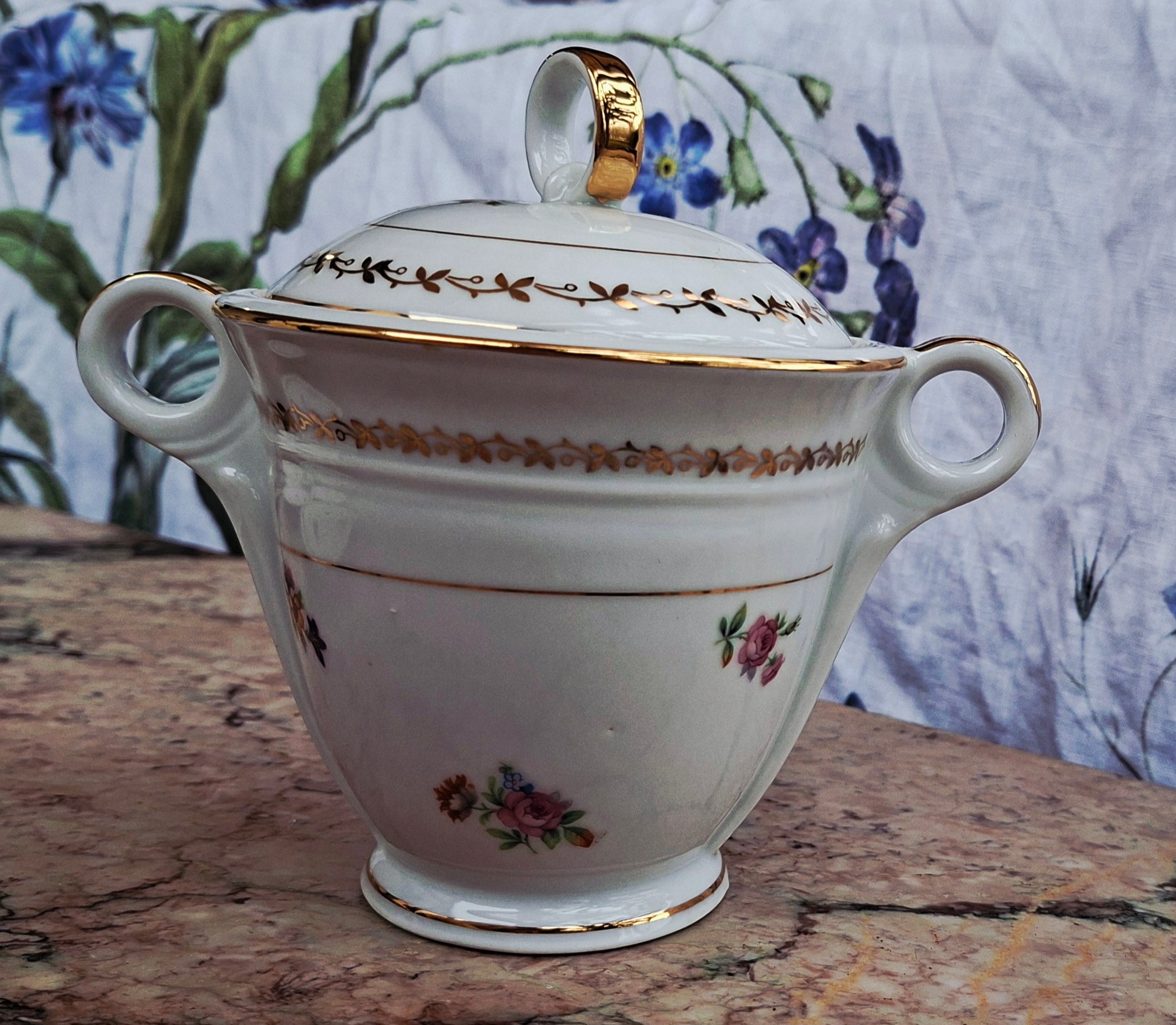 Sucrier en porcelaine dure S.F.P,Pièce élégante et pratique, idéale pour compléter un service à café ou à thé de la même marque